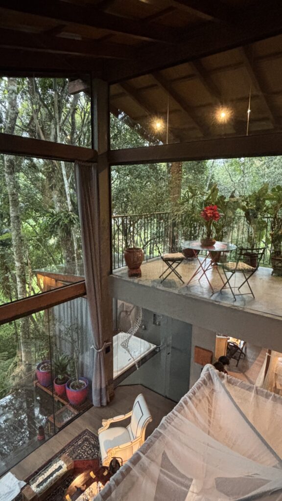 A busca por um refúgio romântico em meio à Mata Atlântica nasce justamente desse desejo: sair do automático e viver, de fato, o agora com calma, com silêncio, com conexão.