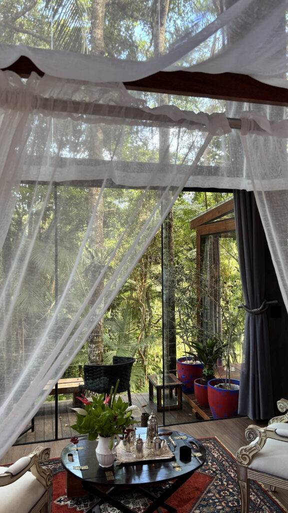 Esse equilíbrio entre natureza brasileira e inspiração francesa cria um ambiente único que se transforma em um verdadeiro refúgio contemporâneo — onde o tempo parece respirar diferente.